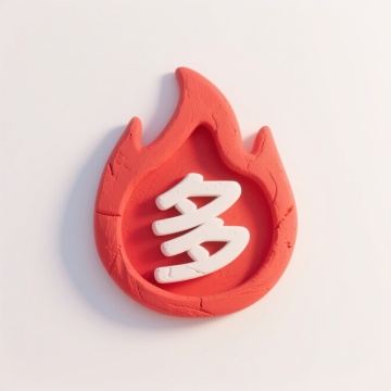 现代感3D风设计,红色火焰包裹白色“多”字,粘土质感,超级符号创意。