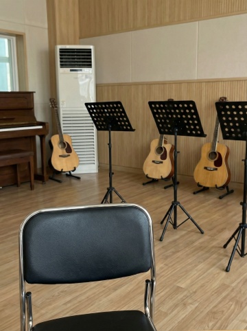 浅蓝色背景上,由白色发光的五线谱曲线和多种音乐符号(高音谱号、八分音符、四分音符、升号)组成的优雅音乐元素图案,符号呈现柔和的半透明发光效果,曲线流畅自然地在画面中形成环绕式布局,整体保持简约现代的设计风格,营造出宁静而富有韵律感的氛围。