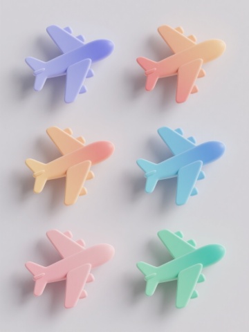 3D卡通风格,六个不同配色、不同材质、不同样式的交通工具元素,排列整齐,白色背景,圆润可爱的造型,鲜艳明亮的色彩,光滑的塑料质感,部分带有透明光泽,每个交通工具都有独特的设计细节,整体呈现出活泼欢快的氛围,具有儿童玩具般的萌系感,光影柔和,边缘清晰,无阴影,简洁干净的视觉效果。