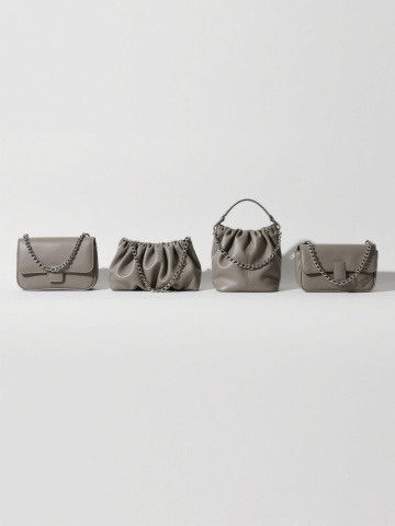 简约现代风格,四件不同款式的连衣裙规整排布,保持与原图一致的浅淡纯色背景,每件连衣裙均展现清晰的服装结构与细节,采用与原图相同的柔和光线、高清晰度和简洁构图,无任何文字、logo或水印,整体造型简约时尚,突出服装本身的设计感与剪裁。