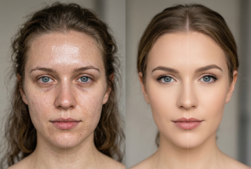 微缩艺术风与3D混合材质结合,超现实主义呈现肌肤焕新过程,科技感与柔和感交织,展现现代护肤的精密与舒适体验。