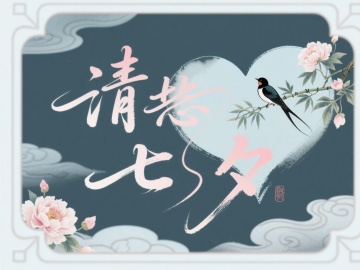 核心元素:水墨爱心、竹枝喜鹊、缠枝芍药、云纹边框 氛围关键词:清雅七夕意境、淡墨晕染感、国风浪漫值拉满 设计方向:手写毛笔字体(瘦金体 / 行书),搭配浅粉、黛青配色,文字边缘融入水墨渐变,背景点缀轻透云纹与芍药花瓣,突出东方雅致浪漫。