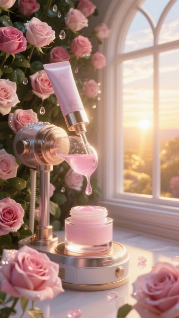 梦幻粉色软3D风,甜美粒子环绕,浪漫节日氛围。