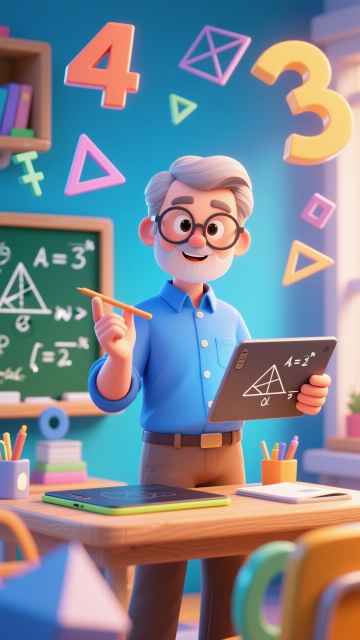 🧐3D 卡通数学老师,数字几何中温和讲学🎓