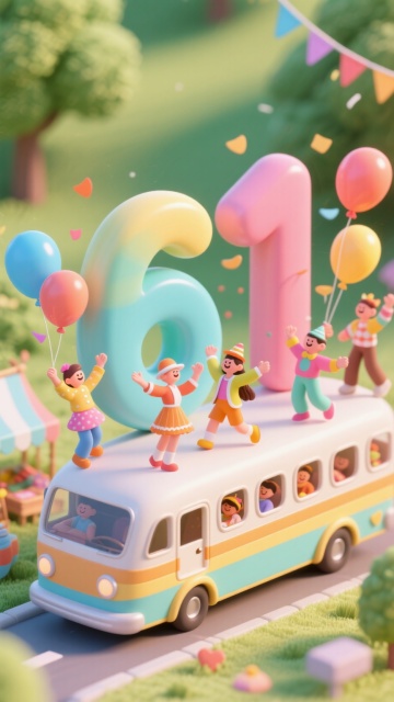一套4个不同元素内容的3D卡通风格系列素材集合,每个素材均为纯色背景,保持相同的3D渲染质感、圆润可爱的造型风格、柔和光影及细腻材质表现,规整排布于同一画面中。第一个元素:粉色系双层生日蛋糕,装饰有奶油花边、彩色糖珠、写有“Happy Birthday!”的立体字母牌、粉色和橙色气球、条纹生日帽、礼物盒;第二个元素:蓝色系三层婚礼蛋糕,点缀有白色糖霜花朵、珍珠装饰、金色丝带、写有“Love Forever”的亚克力牌、淡蓝色和白色气球、蝴蝶结、礼盒;第三个元素:绿色系圣诞主题蛋糕,配有松针装饰、红色浆果、金色铃铛、写有“Merry Christmas”的木质牌、绿色和红色气球、礼物袜、圣诞礼盒;第四个元素:黄色系周年庆典蛋糕,装饰有金色闪光糖霜、数字蜡烛、写有“Happy Anniversary”的金属牌、黄色和金色气球、彩带、纪念礼盒。所有元素均保持统一的3D卡通风格、光影效果和构图比例,背景分别为纯粉色、纯蓝色、纯绿色、纯黄色,整体色彩变换但风格统一,元素类目保持为“节日主题蛋糕+装饰元素+文字牌+气球+礼物”的组合,画面整洁有序,信息传达清晰。