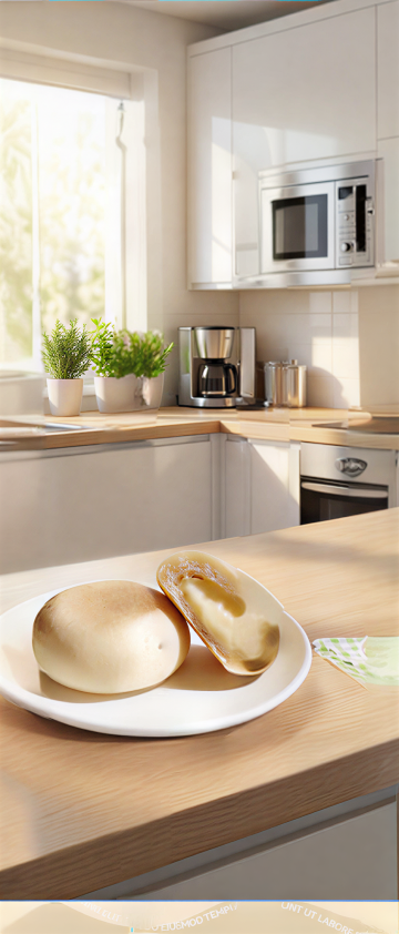 梦幻3D微缩艺术,甜美蛋糕与面包置于镶钻盘中,超现实主义风格,海边阳光洒落,晶莹剔透。