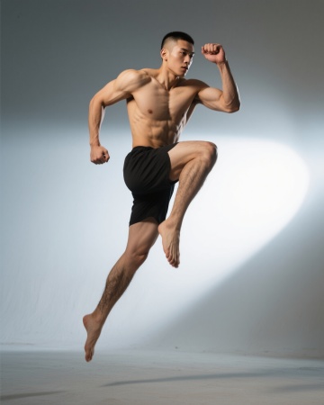 光影交错中跃动的肌肉线条,3D质感强化体积感,现代工业风背景衬托热血励志瞬间,实景拍摄呈现极致力量与动感。