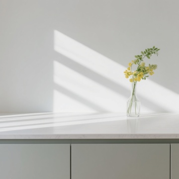 自然光从窗户斜射而入,在浅色墙壁上投下清晰的窗格阴影,营造出明亮通透、宁静舒适的居家办公氛围。一张原木色桌面的书桌,桌面光滑有自然木纹,桌腿为白色简约设计。桌上放置着不同场景和布置:左侧可能是一盆茂盛的绿色观叶植物,右侧是一台打开的银色笔记本电脑,电脑旁叠放着几本不同厚度的书籍,书籍上点缀着一盆小型多肉植物在白色花盆中;或者桌面上是一盏简约设计的台灯,旁边散落着几本翻开的笔记本和一支金属钢笔,桌角可能还有一个小巧的相框或一个复古风格的时钟;又或者是桌面上整齐排列着绘画工具,几支不同型号的画笔插在陶瓷笔筒中,旁边放着打开的颜料盒和一张铺展开的素描纸,角落点缀着一杯热气腾腾的咖啡杯。整体画面采用写实主义风格,色彩以原木色、白色、绿色为主,光影对比柔和,细节丰富,展现出现代简约而不失温馨的不同书桌场景布置。