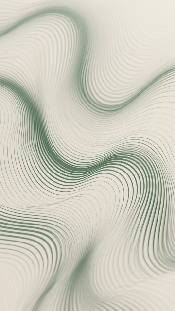 一张具有流动感的抽象纹理图案,由密集排列的细长线条构成,线条呈现出柔和的波浪状扭曲和重叠,形成类似布料褶皱或流体运动的视觉效果。整体色彩从背景的浅米色逐渐过渡到线条的深绿色,线条的粗细均匀,排列紧密且富有节奏感,营造出细腻而富有动态的视觉肌理,整体风格简约现代,具有优雅的韵律感和层次感。