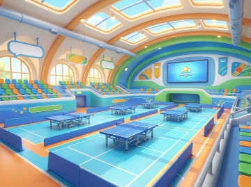 未来主义数字艺术风格的篮球场背景,科技感十足,清爽简洁,不杂乱,现代感强,蓝色和银色为主色调,灯光效果明亮,线条流畅,几何元素点缀
