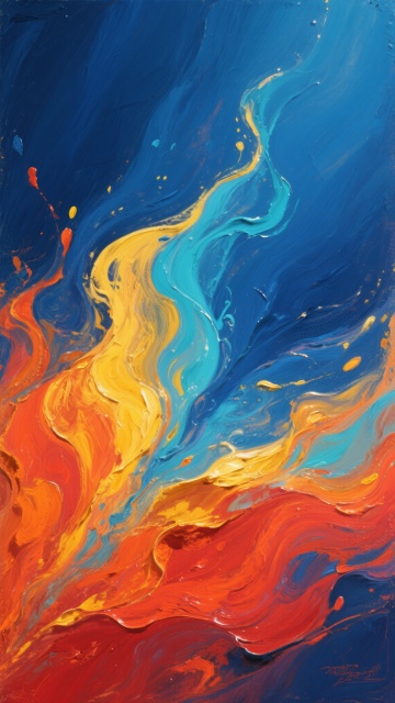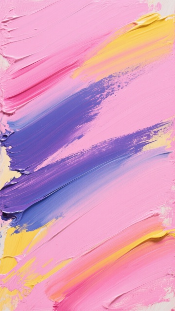 抽象表现主义风格的炫彩背景,以明亮的粉色、紫色和黄色为主色调,融合蓝色和橙色的点缀,呈现出丰富的色彩和谐度。画面采用大胆奔放的笔触质感,厚重的油画颜料堆叠出明显的肌理效果,长而有力的刮擦笔触与飞溅的大小不一的色块、色点相互交织,营造出充满动感和活力的氛围。整体构图饱满,没有明显的视觉焦点,色彩和笔触在画布上自由流淌,形成一种随性而富有生命力的视觉效果。光线表现为均匀的漫反射,使得所有色彩都能充分展现其饱和度和明度,没有强烈的明暗对比,但通过色彩的自然过渡和叠加形成微妙的层次感。炫彩纹路以不规则的曲线和色块分布为主,色彩之间相互渗透融合,既有大块面的色彩区域,也有细腻的色点和线条穿插其中,整体呈现出一种热情洋溢、自由奔放的艺术感觉,适合作为具有强烈视觉冲击力的背景使用。