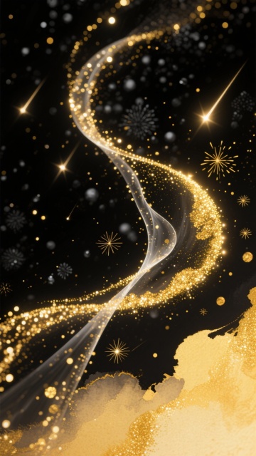 圣诞主题插画,深红色渐变背景,顶部悬挂白色雪花和迷你圣诞树装饰,散落闪烁星星光点,底部雪地场景,中央是挂满礼物和星星的绿色圣诞树,右侧是背着礼物袋挥手的卡通风格圣诞老人,左侧有红色小房子和绿色松树,整体氛围欢快明亮,色彩对比鲜明,装饰元素丰富,充满节日喜庆感。