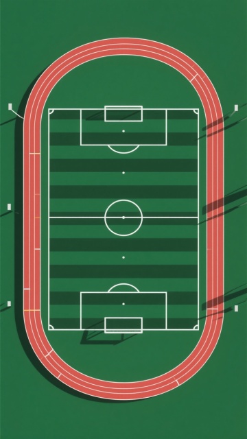 红色塑胶跑道从画面底部中央向远处延伸至消失点,形成强烈的纵深感和透视效果,跑道上的白色分道线清晰笔直,均匀分布,线条边缘锐利,跑道表面有细微的颗粒质感,整体呈现出干净整洁的视觉风格,符合现实中标准田径跑道的场景逻辑,适合作为背景素材使用,画面无任何文字、LOGO及多余元素干扰,只有纯粹的跑道主体,给人一种简洁、专业且富有运动感的氛围。