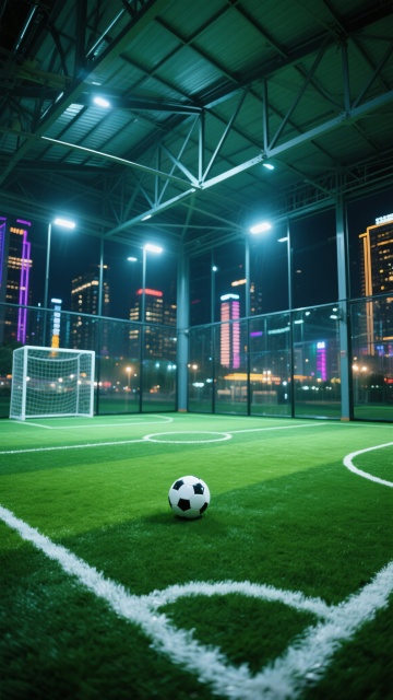 未来主义数字艺术风格的篮球场背景,科技感十足,清爽简洁,不杂乱,现代感强,蓝色和银色为主色调,灯光效果明亮,线条流畅,几何元素点缀