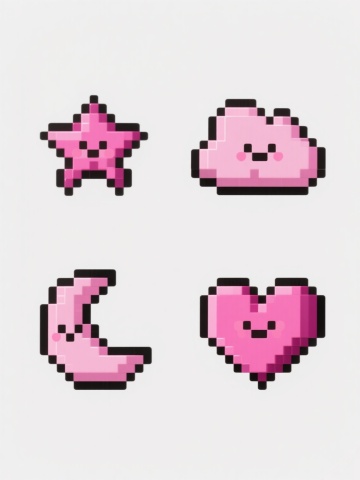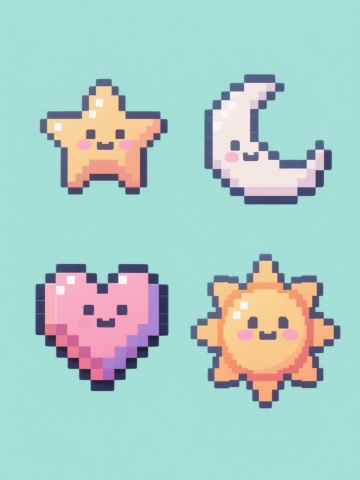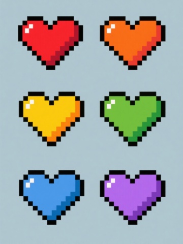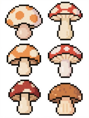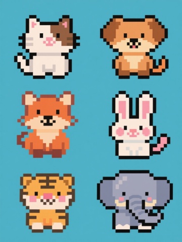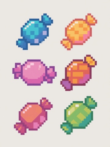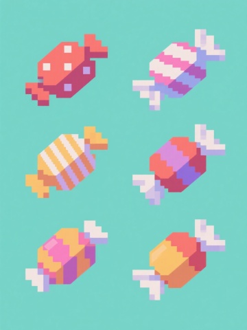 白色背景上规整排布六个完全不同的圣诞节主题像素风格图标,每个图标均采用圆润可爱的造型,色彩明快鲜艳,包含绿色圣诞树配金色星星和彩色装饰球、棕色驯鹿戴绿色围巾捧心形礼物、红色圣诞袜带白色毛绒边和冬青浆果、红白条纹拐杖糖挂金色铃铛、白色雪花图案以及戴红色圣诞帽和围巾的雪人,整体视觉层次清晰,信息传达简洁高效,符合节日氛围的设计感。