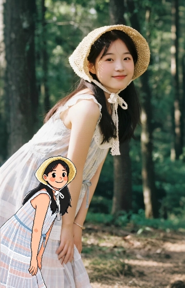 清新森林背景,女孩手捧雏菊,卡通动漫风设计,营造梦幻夏日氛围。