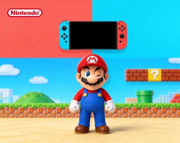 卡通感十足的软3D风格,融合虚拟现实与拼贴风,马里奥穿越经典场景隧道,节日氛围浓郁。