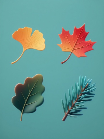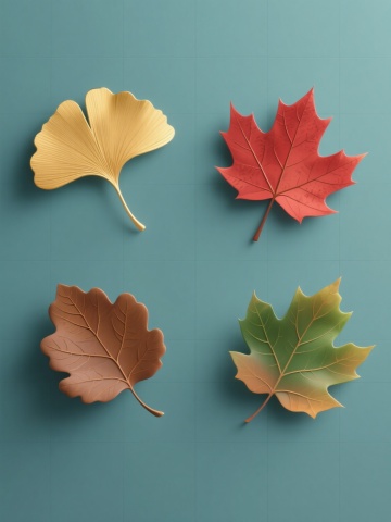 white background, ultra detailed 3D rendering of autumn maple leaves, vibrant gradient colors from golden yellow to deep orange, highly textured leaf surfaces with visible veins and serrated edges, dynamic composition with leaves cascading from top right corner and scattered across bottom edge, some leaves mid-fall in various rotational states, soft shadow effects beneath leaves for depth, cinematic lighting with subtle rim light highlighting leaf edges, hyperrealistic material quality resembling polished autumn foliage, 8K resolution, octane render, trending on artstation, photorealistic autumn leaf arrangement with white negative space