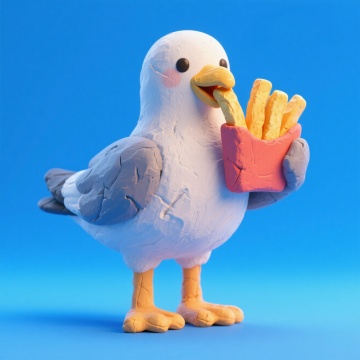 薯条,小眼睛和小嘴巴,有手和脚,可爱风格,渐变半透明材质,磨砂质感,透明亚克力,等距照明马卡龙配色,3D渲染,C4D,干净的背景