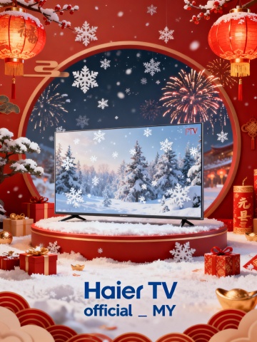 一台现代超薄液晶电视,屏幕上显示着高清写实风格的雪山风景,画面中巍峨的雪山峰顶覆盖着洁白的积雪,山体呈现出灰黑色的岩石纹理,山脚下是金黄色的植被和蜿蜒的河流,河流中点缀着大小不一的黑色岩石,天空是清澈的淡蓝色,整体色彩鲜明,光影层次丰富,电视的银色金属支架支撑着屏幕,展现出简约而现代的设计感。
