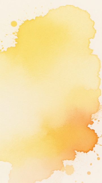 明亮温暖的黄色系水彩风格背景,以鹅黄、柠檬黄、浅橙黄为主色调,色彩柔和渐变交融,边缘带有自然的水彩笔触纹理和不规则的飞溅效果,整体呈现出轻盈通透、富有艺术感的氛围,画面干净简洁,无任何文字和图案元素。