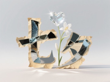 梦幻3D风设计,虚拟自然元素与心形水晶结合,营造浪漫氛围。