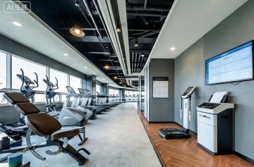 现代感办公空间,融合科技与简约主义,玻璃风落地窗引入自然光,光影交错营造清透舒适氛围,3D渲染呈现轻拟物设计细节,商务感十足。