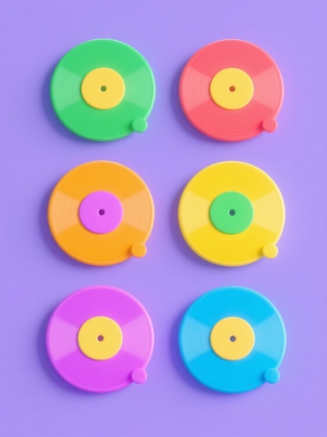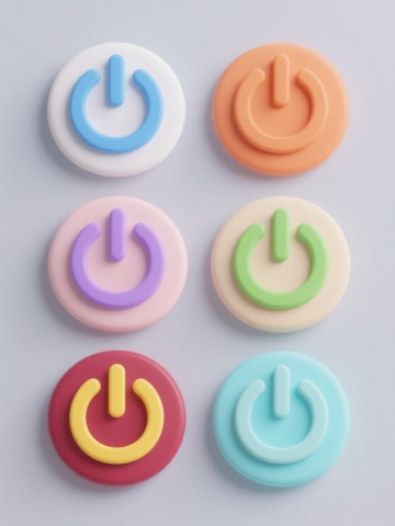 6个不同配色、不同样式、不同材质的「视频播放箭」造型图标,采用浅色背景,上下两行对齐排列,整体呈现简洁现代的UI设计风格,每个播放箭图标具有平滑的渐变色彩过渡,圆形轮廓搭配三角形箭头,体现出精致的3D立体质感,光影效果柔和,高光与阴影过渡自然,图标之间保持均匀间距,整体构图平衡协调,视觉层级清晰,信息传达高效,符合现代数字产品界面的设计美学。