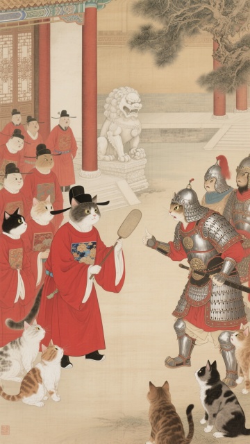 工笔风刺绣狮舞,月华映照下尽显国潮奢华,梦幻唯美的中式民族艺术。