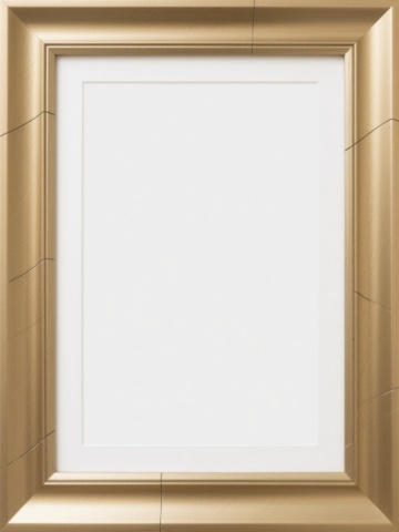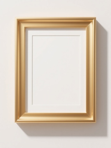 一个具有现代简约风格的金色画框,边框线条干净利落,无复杂雕花装饰,仅在四角和边框中部有细微的几何线条勾勒,整体呈现出平滑的金属质感,光泽柔和不刺眼,边框宽度适中,内部为纯白色的空白区域,整体设计简洁大方,充满时尚感。