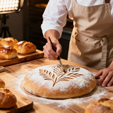 高分辨率写实风格烘焙场景,木质桌面上摆放着多种手工面包,包括切片全麦面包、撒有芝麻和南瓜籽的长棍面包、圆顶乡村面包,旁边放着一把木质刀柄的面包刀和麦穗装饰,背景为柔和的浅灰色,光线从侧面照射形成自然阴影,整体色调温暖,突出面包的金黄质感和纹理细节,营造出温馨质朴的烘焙氛围。