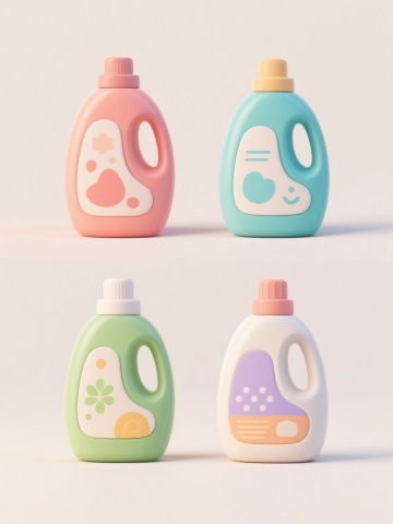 一张婴儿奶瓶系列产品的海报设计,包含四个完全不同造型的奶瓶,采用纯净的纯色背景,延续原图精致的3D渲染风格,主色调为柔和的粉色与透明感结合,每个奶瓶都具有光滑的塑料质感和细腻的高光表现,瓶内装有半满的乳白色液体,光影效果统一。四个奶瓶呈规整的2x2网格排布,保持画面平衡与视觉层级。第一个奶瓶保留原图的双耳带底座设计;第二个奶瓶为流线型无耳设计,搭配波浪形瓶盖;第三个奶瓶采用宽口径、扁圆瓶身配单手柄;第四个奶瓶为卡通动物造型(如小熊头部轮廓),带防滑纹理。整体设计简洁明快,信息传达高效,目标受众为婴幼儿家长,风格可爱、安全、温馨,具有现代产品设计感,无任何文字、LOGO、二维码及联系方式。