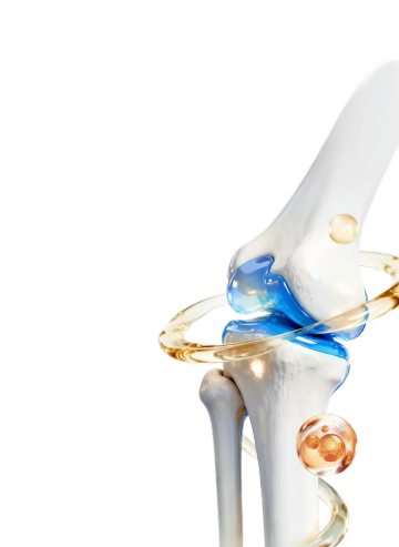 医学插画风格的人体小腿骨折示意图,清晰展示胫骨和腓骨的骨折位置,骨骼结构用白色高亮,骨折线用红色线条标注,周围软组织用淡粉色半透明处理,背景为浅蓝色渐变,画面简洁专业,适合教学使用