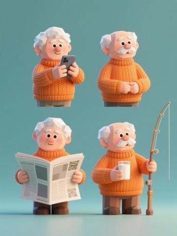 卡通感十足的软3D风设计,老人手持试管,橙色背景突出科学实验的趣味性。