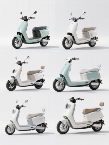 一组6个完全不同造型的摩托车系列素材集合,保持3D渲染的写实风格,每个摩托车均具有清晰的金属质感、光滑的漆面和细致的机械结构,采用纯色背景,整体色彩变换为6种不同的主色调,摩托车元素内容规整排布,每个摩托车造型独特,包含不同的车身线条、车头设计、车尾造型和细节装饰,光影效果统一,具有柔和的高光和自然的阴影,画面简洁干净,信息传达效率高,符合现代产品展示的设计感。