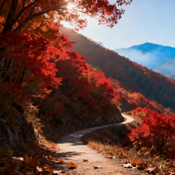 彩叶如花,多色秋日 远山、蓝天、多色彩叶