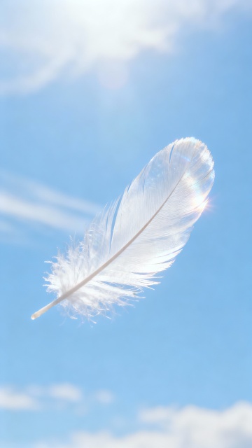 一张明亮、通透的天空背景图,上方是纯净的蓝色,从顶部的深蓝色逐渐过渡到下方的浅蓝色,底部是柔和的白色渐变。几朵形态自然、边缘柔和的白色云朵散布在天空中,云朵体积饱满,带有轻微的光影效果,呈现出轻盈飘逸的质感。整体画面简洁明快,充满宁静、开阔、清新的氛围,给人一种舒适、放松的感觉。