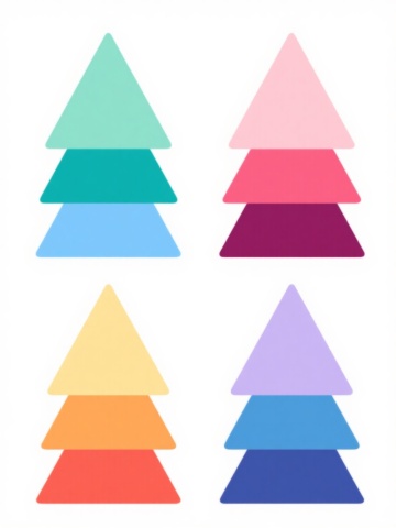极简风格几何图形设计,六个不同配色、不同样式的三角形图标,浅色半透明背景,上下两行各三个三角形呈水平对齐排列。三角形样式包括:粉色填充带黑色描边三角形、浅蓝色描边空心三角形、黑白线条构成的立体三角形、红色线条构成的抽象三角形、黑色线条与三角形碎片组合图形、双层灰色描边空心三角形。所有三角形保持一致的大小和间距,整体视觉简洁、现代,具有清晰的图形识别度和设计感。