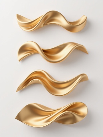 一张展示纯色丝绸的高品质3D渲染图片,主体是一条优雅飘逸的金色丝绸,呈现出柔和细腻的质感与光滑的表面光泽,丝绸以自然流畅的S形曲线动态飞舞,褶皱层次丰富且过渡自然,高光与阴影对比清晰,凸显出丝绸的垂坠感与轻盈灵动的特性,背景为纯白色,整体画面简洁大气,色彩统一和谐,营造出奢华、高贵且宁静的氛围,视觉焦点集中在丝绸本身的形态与材质美感上。