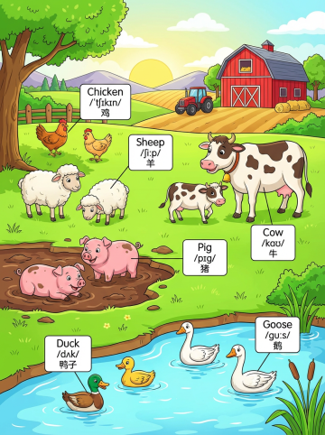 一套6个不同造型的农场元素系列插画,保持原有的可爱卡通手绘风格,圆润线条,明亮温暖的色彩,每个元素独立呈现。包含:1. 戴草帽的小男孩农民抚摸黑白花奶牛,手持牛奶桶;2. 红色谷仓前的橙色拖拉机,车轮有黑色圆点;3. 黄色小鸡一家在绿色草地上觅食,鸡妈妈带着三只小鸡;4. 紫色犁和棕色锄头靠在木栅栏旁,栅栏上挂着红色水壶;5. 灰色小猪在泥坑里打滚,周围有粉色花朵;6. 白色绵羊站在干草堆旁,羊毛蓬松,戴着蓝色蝴蝶结。所有元素规整排布在纯色背景上,每个元素下方有绿色圆形草地底座,整体风格统一,充满童趣。