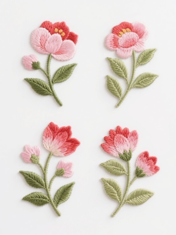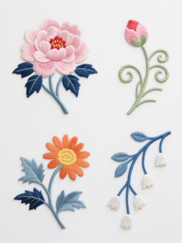 中国传统工笔风格的粉白色牡丹花刺绣图案,以细腻流畅的线条勾勒花瓣轮廓,花瓣层次分明,边缘呈现柔和的渐变粉色,花蕊点缀细小的深色刺绣颗粒,背景为不同纹路交织的精美刺绣底纹,整体画面精致典雅,具有传统刺绣的细腻质感和立体感,色彩和谐统一,留白背景突出主体花卉与刺绣纹路的细节。