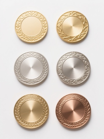 6个不同材质的图钉系列素材集合,规整排布在纯色背景上。每个图钉保持经典图钉造型(圆形平头、圆柱形钉身、尖细钉尖),但材质和视觉质感完全不同:1. 高光泽金属蓝色图钉,表面有强烈反光和细腻高光,呈现出光滑的塑料或金属质感,带有自然阴影;2. 哑光木质图钉,呈现原木纹理和温暖的木色,表面有细微的木纹肌理和柔和的漫反射光影;3. 透明玻璃图钉,清澈通透,带有玻璃特有的折射光影效果和轻微的蓝色调,钉尖为银色金属;4. 磨砂陶瓷图钉,表面粗糙有颗粒感,呈现均匀的白色,带有柔和的哑光光泽;5. 闪亮金色金属图钉,金属质感强烈,表面有精致的拉丝纹理,呈现出奢华的金色光泽;6. 柔软橡胶质感图钉,颜色为鲜艳的红色,表面有细微的防滑纹理,呈现出柔软有弹性的质感。所有图钉大小一致,以2x3的网格形式规整排列,每个图钉下方都有自然的阴影,整体画面简洁、现代、具有产品展示感。