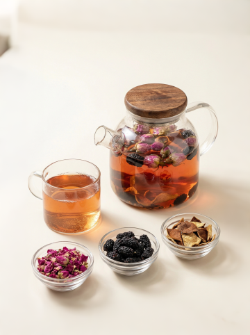 高清晰写实风格的茶元素系列素材集合,六个完全不同的茶相关元素规整排布在纯白色纯色背景上,保持透明玻璃材质的细腻质感和金黄茶水的通透光泽,光影效果统一为柔和的顶部光源,阴影清晰自然。第一个元素:透明玻璃盖碗中盛放着嫩绿的碧螺春茶叶,茶汤清澈;第二个元素:紫砂茶壶搭配四个小茶杯,壶嘴微微倾斜,仿佛刚倒出茶水;第三个元素:透明玻璃公道杯下方摆放着三个不同品种的干茶样本,分别是红茶、绿茶和乌龙茶;第四个元素:青瓷茶杯中漂浮着几朵茉莉花,茶汤呈现淡黄色;第五个元素:黑色陶制茶则中装满了条形的武夷岩茶,旁边放着一把竹制茶针;第六个元素:透明玻璃茶壶中浸泡着普洱茶饼,茶汤呈深红色,壶身上有简约的线条花纹。所有元素保持统一的写实风格和光影处理,整体构图平衡对称,每个元素独立成组又相互协调,形成完整的茶元素系列集合。