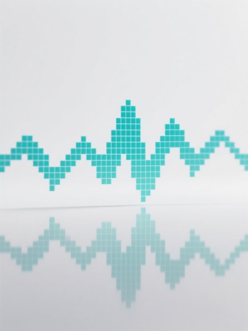 纯白纯色背景,保持简约现代的数字艺术风格,使用蓝绿色到深蓝色的渐变色调,由细小的点和线条构成声波元素。画面中规整排布6个完全不同造型的声波元素:1. 高低错落的垂直柱状声波,带渐变效果;2. 平滑起伏的正弦曲线声波,线条由点连接;3. 尖锐脉冲状的锯齿形声波,线条粗细变化;4. 疏密有致的点状散布声波,形成波浪形态;5. 对称分布的双峰波形声波,左右镜像;6. 阶梯状上升下降的折线声波,带有明显分段感。所有声波元素保持相同的视觉质感和色彩体系,整体布局均衡,每个声波元素独立清晰,形成系列素材集合。