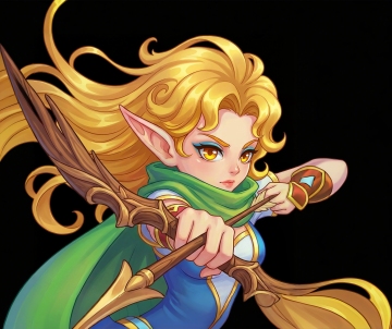 二次元动漫风格立绘,白色背景,一位身着红色与黑色为主色调华丽服饰的女性角色,她有着金色的长发,头戴带有红色宝石的黑色发冠,眼神锐利而自信。上身为黑色紧身露肩上衣,点缀金色花纹,外披红色金边披风,披风边缘有毛绒装饰。下身为高腰红色短裙,裙摆呈不规则层叠设计,搭配黑色过膝长靴,靴筒有金色扣带。手中持有一把燃烧着红色火焰的长剑,剑柄华丽镶嵌宝石。整体造型充满力量感与高贵气质,线条流畅,色彩对比强烈,光影效果突出,人物姿态挺拔,微微侧身,一只手握着剑柄置于身侧,另一只手自然下垂,披风随风飘动,展现出动态的美感,细节丰富,服饰质感细腻,具有浓厚的奇幻战斗风格。