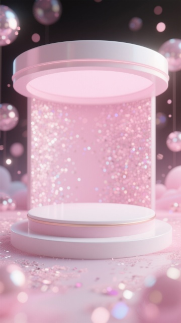 梦幻粉色软3D风,甜美粒子环绕,浪漫节日氛围。