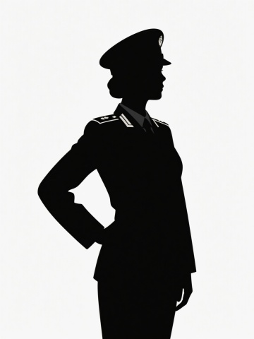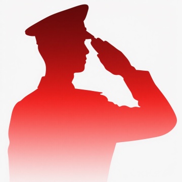 白色背景上的红色剪影,一个穿着军装的人物侧影,正在敬礼,头部戴着军帽,右手举至帽檐处,左手自然下垂,整体呈现出庄重、肃穆的氛围,剪影边缘清晰,内部颜色均匀,没有多余的细节和装饰。