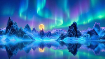 梦幻与未来交织的琉璃山水,鎏金浮雕勾勒出彩虹河谷,玻璃画风与虚拟自然融合,光影流转间尽显奢华唯美的科技诗意。