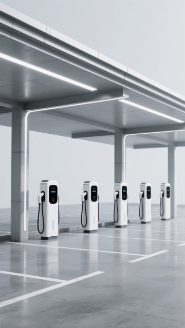 超写实广角镜头呈现极简工业风地下停车场全景,高级灰主调,高光环氧树脂地坪映LED灯管白光带,灰色立柱底黄警示纹,清晰白停车线与黄定位块,光线均匀柔和,强空间纵深与几何秩序,干净现实风背景素材适用