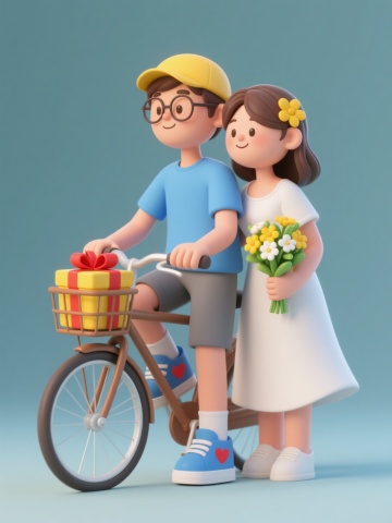 温馨软3D风教室,卡通老师手捧花束与爱心卡片,学生献礼,节日氛围浓厚。
